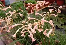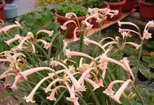 多年生常绿球根植物,株高约20~30cm,地下鳞茎球形,叶线形,绿色,花自地下鳞茎抽生而出,细长,花呈长筒状,略低垂,每个花枝着花8朵左右,有黄、橙红、白、粉红等色。花期冬春,果期春季,…全部>>