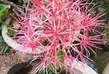 网球花是石蒜科,网球花属多年生草本植物。鳞茎球形,叶片长圆形,叶柄短,鞘状。花茎直立,实心,高可达90厘米,先叶抽出,淡绿色或有红斑;伞形花序具多花,花红色;花被管圆筒状,花被裂片线形,花丝红色,…全部>>