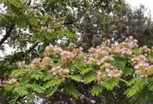 合欢,又名马缨花、绒花树、夜合合等,为豆科合欢属的一种落叶乔木。合欢的树高可达16米,人工特别养护的可达30米,树冠开展;二回羽状复叶,…全部>>