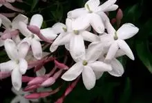 素馨花,木犀科素馨属多年生的攀援灌木植物。攀援灌木,小枝圆柱形,具棱或沟;叶对生,叶轴常具窄翼,小叶片卵形或长卵形;聚伞花序顶生或腋生,花序梗长,苞片线形,花萼无毛,裂片锥状线形,花冠白色,…全部>>