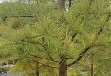 池杉 Croom)是杉科、落羽杉属植物,亦称池柏,沼落羽松。落叶乔木,高可达25米。主干挺直,树冠尖塔形。树干基部膨大,枝条向上形成狭窄的树冠,尖塔形,形状优美;叶钻形在枝上螺旋伸展;球果圆球形。…全部>>