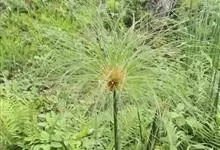 纸莎草是莎草科、莎草属的植物,具有粗壮的根状茎,高达2-3米,茎秆簇生,粗壮,直立,钝三棱形。叶退化呈鞘状,茎秆顶端着生总苞片,呈伞状簇生,总苞片叶状,披针形,顶生花序伞梗极多,细长下垂。瘦果灰褐色,…全部>>