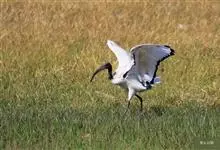 圣鹮头、颈黑色,身体白色,初级和次级飞羽尖端黑色。喙长且厚、黑色下弯,跗蹠与趾黑色。下背部有大量黑色纱状装饰羽,翼下裸露皮肤红色,体侧有时带黄褐色。亚成鸟的头、颈有羽毛,斑驳黑色带有白色纵纹,…全部>>
