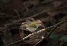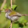 普通缝叶莺,是雀形目鹅科莺亚科缝叶莺属一种。体长10-14厘米,体重7-10克,雄鸟前额棕红,头顶至枕棕橄榄褐,上体橄榄绿染黄,飞羽及尾羽暗褐;繁殖期雄鸟的中央尾羽特形延长,下体淡皮黄白色。…全部>>