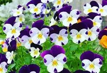 角堇:为堇菜科堇菜属多年生草本植物。株高10-30厘米 ,宽幅20-30厘米。具根状茎。茎较短而直立,分枝能力强。花两性,两侧对称,花梗腋生,花瓣5,花径 2.5-4.0厘米。花色丰富,…全部>>