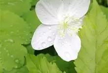 掌叶覆盆子是蔷薇科悬钩子属植物,藤状灌木,高1.5-3米;枝细,具皮刺,无毛。单叶,近圆形,直径4-9厘米,两面仅沿叶脉有柔毛或几无毛,基部心形。单花腋生,…全部>>