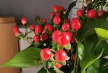 红果金丝桃,园艺栽培品种,属于被子植物门木兰纲金虎尾目金丝桃科金丝桃属。学名:Hypericum × inodorum ‘Excellent Flair’常绿灌木,高1.2米。单叶对生,无柄,椭圆形,…全部>>
