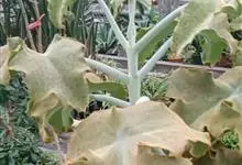 仙女之舞是景天科、伽蓝菜属植物。常绿肉质灌木,株高可达2-3米。幼株茎上有毛。叶有柄;单叶对生,阔卵状三角形,肉质;新叶开展,老叶正面凹、背面圆凸,缘具稀锯齿,橄榄绿色至灰绿色,被稠密的灰白色毛。…全部>>
