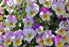 角堇:为堇菜科堇菜属多年生草本植物。株高10-30厘米 ,宽幅20-30厘米。具根状茎。茎较短而直立,分枝能力强。花两性,两侧对称,花梗腋生,花瓣5,花径 2.5-4.0厘米。花色丰富,…全部>>