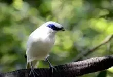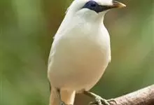 长冠八哥:是一种大型椋鸟,体长约25厘米,雌雄相似,外形俊朗,羽冠发达,眼睛四周和面部裸出,裸露部分为蓝色,全身羽毛纯白色,尾部和翼端的边缘呈黑色,脚灰色。全身白色,具较长冠羽,…全部>>