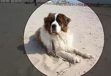 圣伯纳犬,别名巴里汉德,属于大型工作犬,肩高约65~90厘米,体重约50~90千克。圣伯纳犬身体强壮,被毛红褐色和白色相间,头圆而宽大。颈部强壮,胸宽深,背直。前肢长直,腕关节略前倾,后肢腿骨粗壮,…全部>>