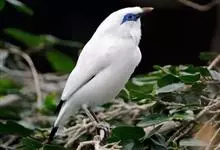 长冠八哥:是一种大型椋鸟,体长约25厘米,雌雄相似,外形俊朗,羽冠发达,眼睛四周和面部裸出,裸露部分为蓝色,全身羽毛纯白色,尾部和翼端的边缘呈黑色,脚灰色。全身白色,具较长冠羽,…全部>>