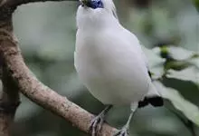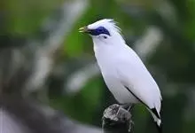 长冠八哥:是一种大型椋鸟,体长约25厘米,雌雄相似,外形俊朗,羽冠发达,眼睛四周和面部裸出,裸露部分为蓝色,全身羽毛纯白色,尾部和翼端的边缘呈黑色,脚灰色。全身白色,具较长冠羽,…全部>>
