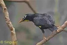 金冠树八哥为椋鸟科树八哥属的鸟类。体长约23厘米,闪辉黑色。特征为具翼斑及颏黄色,脸颊裸露皮肤粉黄色。分布于印度、缅甸、泰国以及中国大陆的云南、广东等地。…全部>>