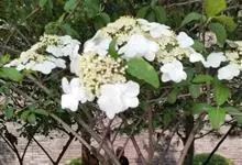 蝴蝶戏珠花 Miq.)是荚蒾科荚蒾属植物。落叶灌木,高达3米;当年小枝浅黄褐色。叶较狭,宽卵形或矩圆状卵形,有时椭圆状倒卵形。花序直径4-10厘米,外围有4-6朵白色、木型的不孕花。果实先红色后变黑色,…全部>>