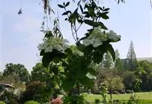 琼花是荚蒾科荚蒾属落叶或半常绿灌木植物,又名扬州琼花、蝴蝶木、八仙花、聚八仙、蝴蝶戏珠花、毛琼花。琼花高达4米;树皮灰褐色或灰白色。叶纸质,卵形至椭圆形或卵状矩圆形。聚伞花序,花冠白色,辐状。…全部>>