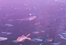 霓虹灯鱼,是脂鲤科携灯鱼属鱼类。霓虹灯鱼的体形小巧,身体狭长;体色异常鲜艳,鱼体上半部有一条明亮的银蓝绿色纵带;在鱼体下半部约由腹部附近开始至尾部为火红色;两眼具有青绿色的光彩,…全部>>