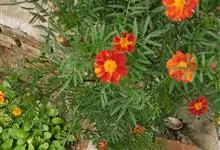 万寿菊是菊科万寿菊属一年生草本植物,别名孔雀菊、缎子花、臭菊花、西番菊、红黄草、小万寿菊、臭芙蓉、孔雀草。万寿菊茎近基部分枝。叶羽状分裂,长5-10厘米,宽4-8厘米,裂片长椭圆形或披针形,具锐齿,…全部>>