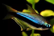 霓虹灯鱼又被称为红绿灯鱼、红莲灯鱼。鱼纲,脂鲤科。原产亚马孙河上游。体长3~4厘米,体形较细,色泽美丽,体上部的绿线,因光线角度不同,有时显出蓝色,与体下部的红线极为协调,又与腹部全红的新红绿灯鱼〔…全部>>