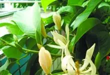 醉香含笑是木兰科含笑属的乔木。树皮灰白色,光滑不开裂。芽、嫩枝、叶柄、托叶及花梗均被紧贴而有光泽的红褐色短绒毛。叶革质,呈倒卵形、椭圆状倒卵形、菱形或长圆状椭圆形。花单生或由2-3朵花组成聚伞状花序。…全部>>