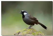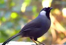 黑喉噪鹛是噪鹛属鸟类。体长24-29厘米,体重75-90克。雄鸟前额、眼先、眼周和眼后纹以及颊、须和喉黑色;黑色前额和蓝灰色头顶之间有道白色细斑;颈侧具椭圆形白斑,…全部>>