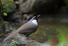 白颊噪鹛是雀形目噪鹛科噪鹛属鸟类,又称土画眉、小画眉、小噪鹃。成鸟额至头顶栗褐色,长眉纹、眼先和颊纹棕白色,眼后至耳羽深褐色,…全部>>