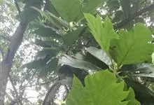 面包树 Fosberg)是桑科波罗蜜属植物。叶大,成熟之叶羽状分裂,表面深绿色,背面浅绿色;穗状花序单生叶腋,雄花序长圆筒形至长椭圆形或棒状;聚花果倒卵圆形或近球形;花期为3~5月,果期为7~10月。…全部>>