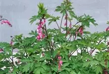 荷包牡丹 Fukuhara),是罂粟科荷包牡丹属的多年生草本植物,株高30-60厘米,具肉质根状茎;茎直立呈圆柱形;叶二回三出全裂,状似牡丹叶;总状花序顶生,基部为心形,花瓣紫红色至粉红色,稀白色,…全部>>
