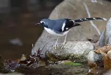 白额燕尾是雀形目鸫科燕尾属鸟类,又叫水鸦雀、白冠燕尾、黑背燕尾。前额至头顶具白斑,头余部、颈、背、喉及胸黑色,腰、腹部及尾下覆羽白色,两翼黑色且具白色翼斑;尾上覆羽黑色并具白色端斑,中央尾羽最短,…全部>>