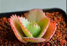 褐斑伽蓝是景天科伽蓝菜属的多年生多肉类植物,茎直立,多分枝,叶生于枝上,肉质叶片匙形,上面密被白色绒毛,下部全缘,叶缘上部有缺刻,缺刻处有深褐或棕色斑块。褐斑伽蓝原产非洲的马达加斯加岛。…全部>>