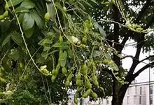 槐 Schott),豆科槐属的落叶乔木。树皮暗灰色,树冠球形,老时则呈扁球形或倒卵形。枝叶密生,羽状复叶。圆锥花序顶生,花蝶形,夏季开黄白色花,略具芳香。荚果肉质,念珠状不开裂,黄绿色,常悬垂树梢,…全部>>