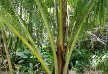 酒瓶椰为棕榈科椰子属植物。干高1-3米,径35-70厘米;茎干下部肥大,形似酒瓶,环节明显;羽状复叶,拱形生长,略呈旋转;小叶披针形,叶面略带红色;花序由冠茎基部长出,分枝下垂;果实椭圆形,…全部>>
