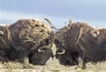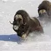 麝牛,是偶蹄目牛科麝牛属哺乳动物。麝牛体型大,但低矮粗壮,头大,吻部宽,眼小;雌雄均具角,四肢短粗,蹄宽大;毛被厚,极耐寒,尾短。雄麝牛在发情时会散发出一种类似麝香的气味,又称麝香牛。…全部>>