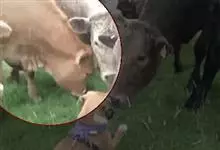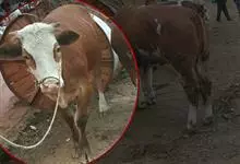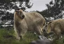 羚牛,偶蹄目牛科羚牛属哺乳动物,俗称扭角羚、野山牛、盘羊。其体形粗壮。尾短。吻鼻部隆起且裸露。前额隆起,毛短而蓬松。角基粗,由头顶长出后先向上升起,又突然翻转,靠近头部,复向外伸,然后又向后弯转,…全部>>