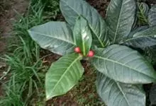 东方紫金牛是报春花科、紫金牛属植物。灌木,高达2米,通常无毛;叶厚,新鲜时略肉质,倒披针形或倒卵形,顶端钝和有时短渐尖,基部楔形,长6-12厘米,宽3-5厘米,全缘,…全部>>