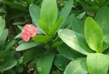 铁海棠为大戟科大戟属蔓生灌木植物;茎多分枝,具纵棱,呈旋转状;叶互生,通常集中于嫩枝上;每个花序基部边缘具微小的红色尖头;苞叶先端圆且具小尖头,无柄,上面鲜红色,下面淡红色;苞片丝状;子房光滑无毛,…全部>>