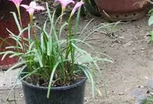 小韭兰学名韭菜莲又名风雨花、菖蒲莲、红玉帘和旱水仙,多年生草本,鳞茎卵球形,基生叶常数枚簇生,线形,扁平,花单生于花茎顶端,下有佛焰苞状总苞,花玫瑰红色或粉红色,蒴果近球形,种子黑色,花期夏秋。韭莲…全部>>