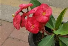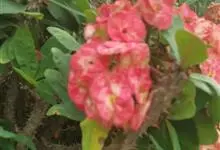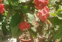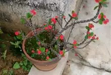 铁海棠为大戟科大戟属蔓生灌木植物;茎多分枝,具纵棱,呈旋转状;叶互生,通常集中于嫩枝上;每个花序基部边缘具微小的红色尖头;苞叶先端圆且具小尖头,无柄,上面鲜红色,下面淡红色;苞片丝状;子房光滑无毛,…全部>>