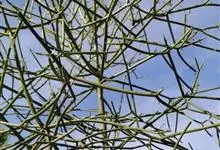 绿玉树是大戟科、大戟属植物。小乔木,高2-6米,直径10-25厘米,老时呈灰色或淡灰色,幼时绿色,上部平展或分枝;小枝肉质,具丰富乳汁。叶互生,长圆状线形,长7-15毫米,宽0.7-1.5毫米。…全部>>