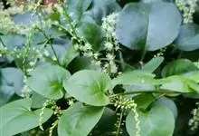 落葵薯 Steenis)是落葵科、落葵薯属的一种缠绕藤本植物,根状茎粗壮,叶具短柄,叶片卵形至近圆形,基部圆形或心形;总状花序具多花,花被片白色,渐变黑,开花时张开,卵形、长圆形至椭圆形,顶端钝圆,…全部>>
