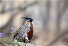 红腹角雉属于鸡形目雉科,雄鸟体羽及两翅主要为深栗红色,满布具黑缘的灰色眼状斑,下体灰斑大而色浅。雌鸟上体灰褐色,下体淡黄色,杂以黑、棕、白斑。全部>>
