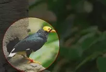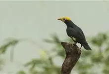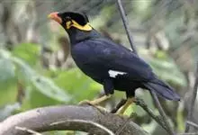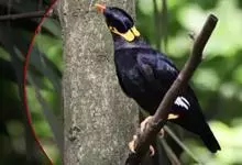 金冠树八哥为椋鸟科树八哥属的鸟类。体长约23厘米,闪辉黑色。特征为具翼斑及颏黄色,脸颊裸露皮肤粉黄色。分布于印度、缅甸、泰国以及中国大陆的云南、广东等地。…全部>>