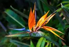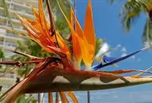 鹤望兰,别名天堂鸟,为鹤望兰科鹤望兰属的一种多年生草本植物;无木质树干;花序生于与叶柄近等长或稍短的花序梗上,佛焰苞1;花较小,萼片橙黄色,长7.5-10厘米,箭头状花瓣基部具耳状裂片,…全部>>