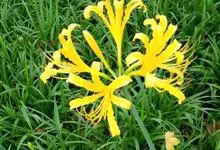 忽地笑 Herb.)是石蒜科石蒜属的多年生草本植物。鳞茎卵形;叶剑形,向基部渐狭,顶端渐尖,中间淡色带明显;苞片披针形;伞形花序,花呈黄色,花被裂片背面具淡绿色中肋,倒披针形,雄蕊略伸出于花被外,…全部>>