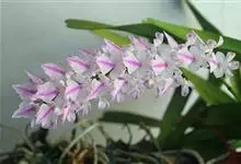 多花指甲兰是兰科、指甲兰属植物。茎粗壮,叶肉质。花序叶腋生,柄粗壮,轴较长,密生许多花;花苞片绿色,质地厚,卵状披针形;花梗和子房白色带淡紫色晕;子房棒状,…全部>>