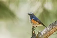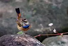 红胁蓝尾鸲俗名:蓝点冈子、蓝尾巴根子、蓝尾杰、蓝尾欧鸲。体型略小而喉白的鸲。特征为橘黄色两胁与白色腹部及臀成对比。雄鸟上体蓝色,眉纹白;亚成鸟及雌鸟褐色,尾蓝。…全部>>