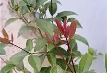 石楠 Kalkman),是蔷薇科石楠属的常绿乔木,高5~12米,株型紧凑,树冠圆球形。树枝为褐灰色;鳞片为褐色,没有毛;叶片革质,长椭圆至侧卵状椭圆形,有锯齿,新叶红色光亮。复伞房花序,白色小花,…全部>>