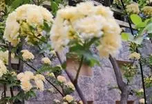 黄木香花 Rehd.)是蔷薇科、蔷薇属植物,为木香花的变型品种,攀缘小灌木,高可达6米。小叶3-5枚,稀7枚,小叶片椭圆形或长圆状披针形,先端急尖或稍钝,基部近圆形或宽楔形,边缘有紧贴细锯齿。花小型,…全部>>