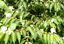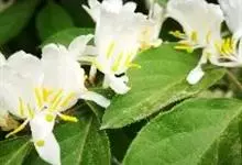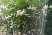 山银花在华南地区野外山林生长。木质藤本,长2~5m。树皮黄褐色渐次变为白色,嫩时有短柔毛。叶对生,卵圆形至椭圆形,长4~8cm,宽3.5~5cm,上面绿色,主脉上有短疏毛,下面带灰白色,密生白色短柔…全部>>