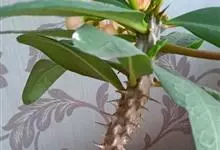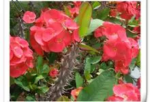 虎刺梅:别称铁海棠,是蔓生灌木植物。茎多分枝,长60-100厘米,直径5-10毫米,具纵棱,密生硬而尖的锥状刺,刺长1-1.5厘米,直径0.5-1.0 毫米,常呈3-5列排列于棱脊上,呈旋转。叶互生…全部>>